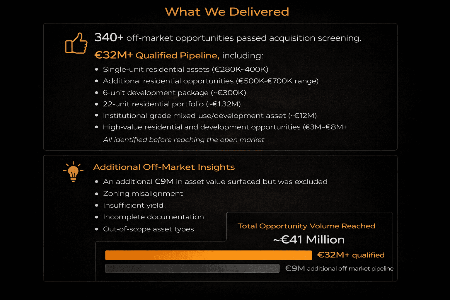 €41M in Verified Off-Market Opportunities Generated Through Multi-Segment Outbound