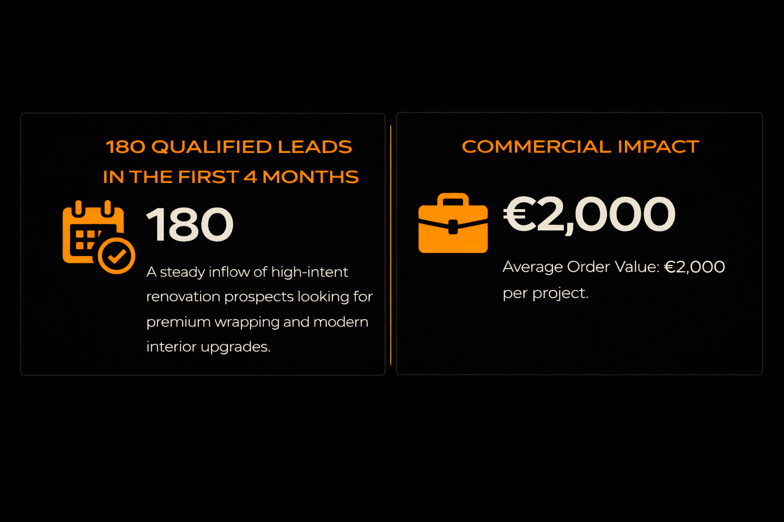 Wrap by Djam, a specialist in interior wrapping and rapid one-day renovation, generated 180 qualified leads in just four months, establishing a predictable pipeline for high-margin projects in a competitive renovation market.